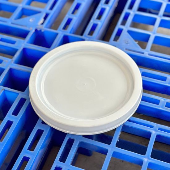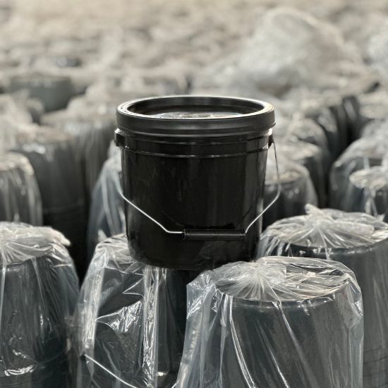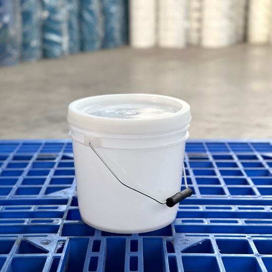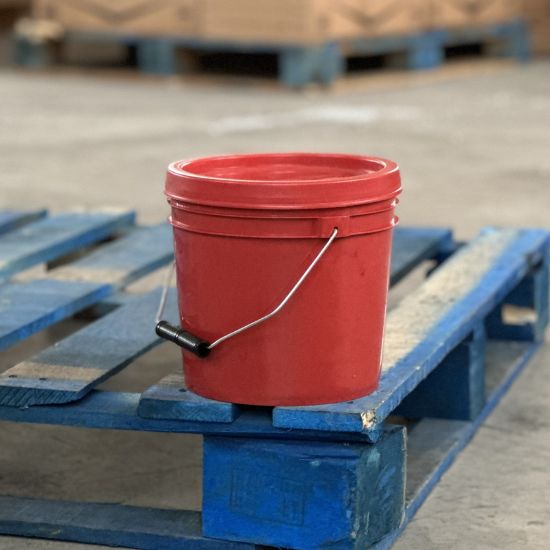 Cubeta de 4 litros con tapa y asa metálica, capaz de almacenar líquidos, sólidos y semisólidos.
